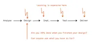 - Let´s say you learn during your implementation phase and something has to be reworked which makes a design change necessary. Will you proceed a change request? How long will you try to avoid it? Usually, a change request in the waterfall process is treated like a failure which is being sought to circumvent as long as possible. That´s why change requests are so expensive in this process model. And that´s why learning is so costly in the waterfall process.