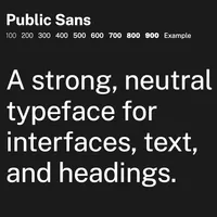 A neutral sans serif for interfaces, text, and headings by the US Web Design System (US Government). Open and available at Google Fonts and on the Public Sans website.