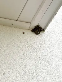 We have a wasps nest under the terrace roof. At first the wasps have been inside the roof and I closed the whole they were flying through. Unfortunately new the wasps start creating a new nest. I´m still reluctant but I think I have to remove it. Because Emil was the one who discovered the initial whole in the first place he is very attached to what´s happening. The impression made him creating his own wasps nest with a queen wasp in the center.